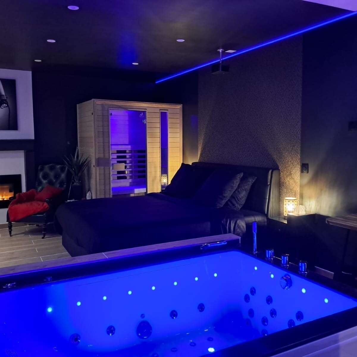 Offrez-vous un moment suspendu dans notre suite tout confort, pensée pour la reconnexion et le plaisir à deux. Lit 180x200 Baignoire balnéo + grande douche avec jets au plafond Sauna privatif pour deux Un lieu moderne, intime et entièrement neuf, parfait pour les couples, amoureux ou complices en quête de bien-être et de moments précieux. Discrétion & confort absolus.