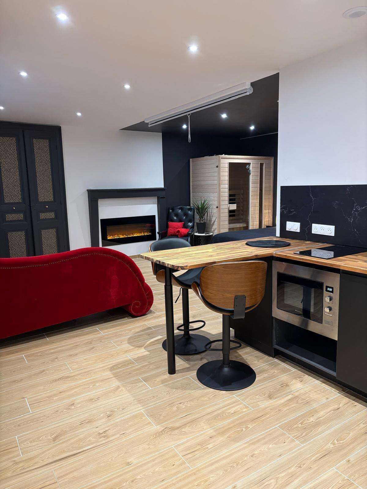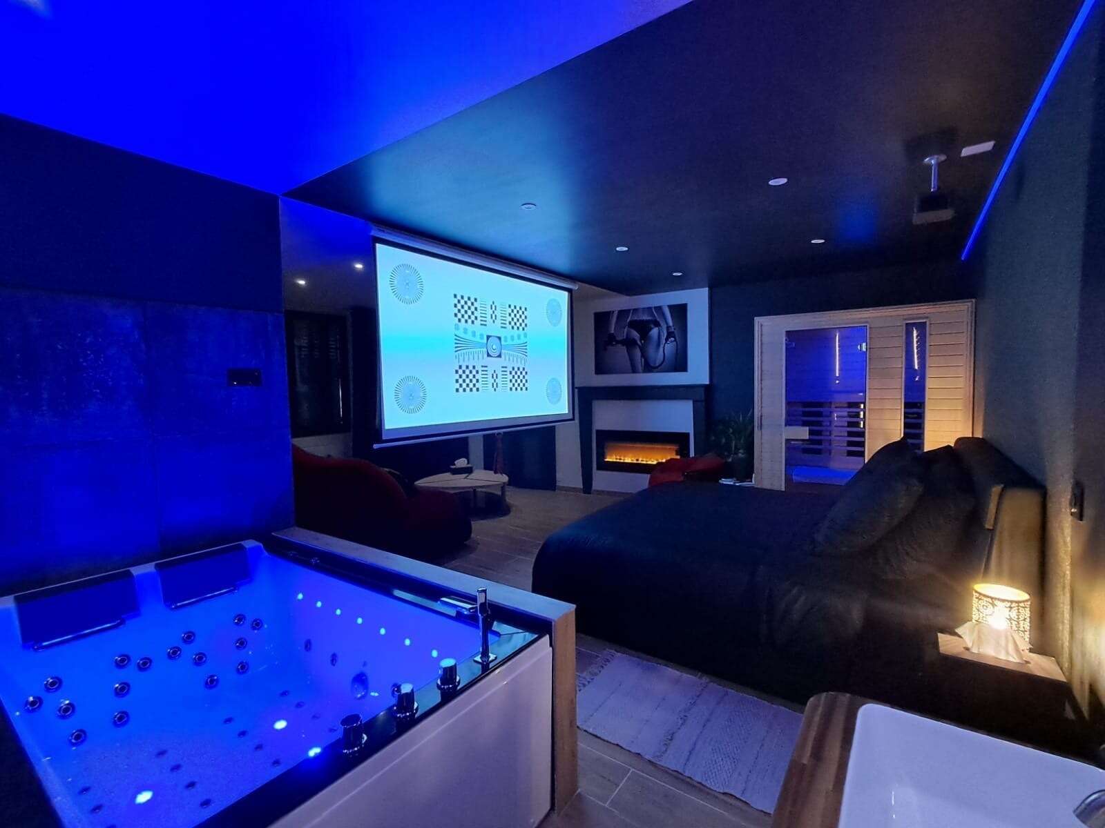 Découvrez une love room pensée pour une parenthèse inoubliable : vraie salle de cinéma privée avec fauteuils massant, vidéoprojecteur, machine à popcorn et son immersif, salle de massage avec huiles parfumées pour une détente totale, balnéo lumineuse, chambre cosy, cuisine équipée, salon élégant et terrasse. L’escapade parfaite pour raviver la magie à deux et créer des souvenirs mémorables.